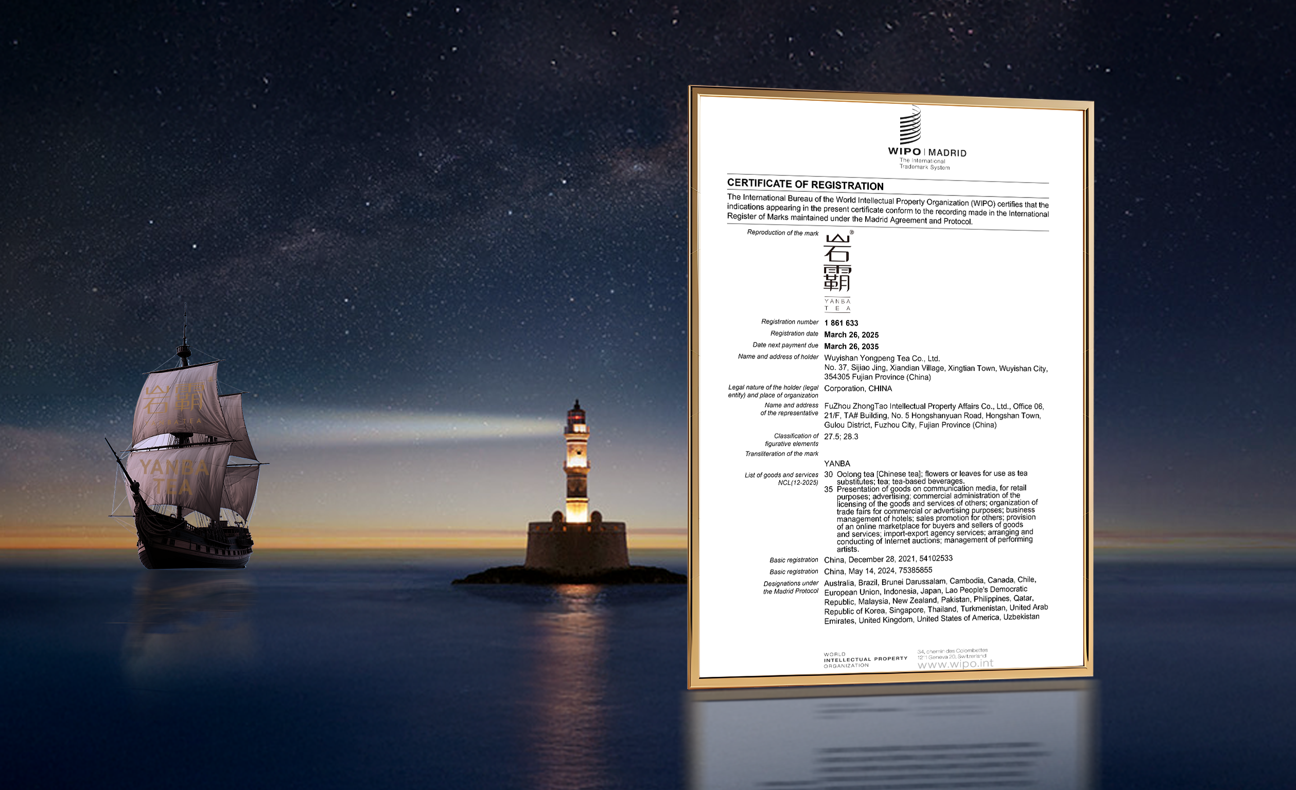 2025年7月,"岩霸YANBATEA"英文商标,通过了马德里国际注册认证申请,含括五大洲的55个主要经济国家,初步完成全球化商标布局。